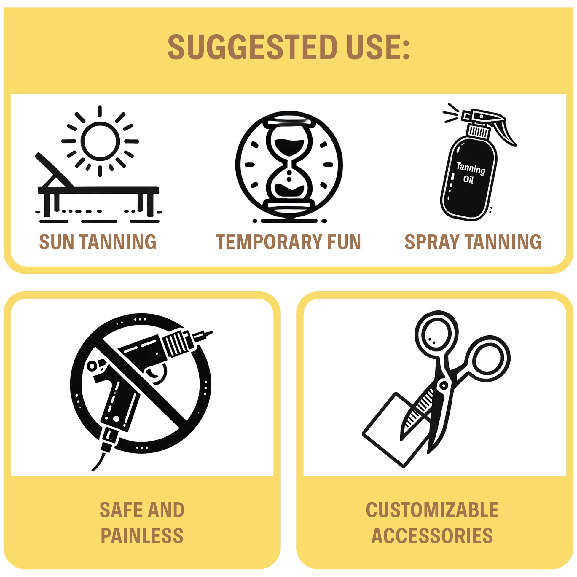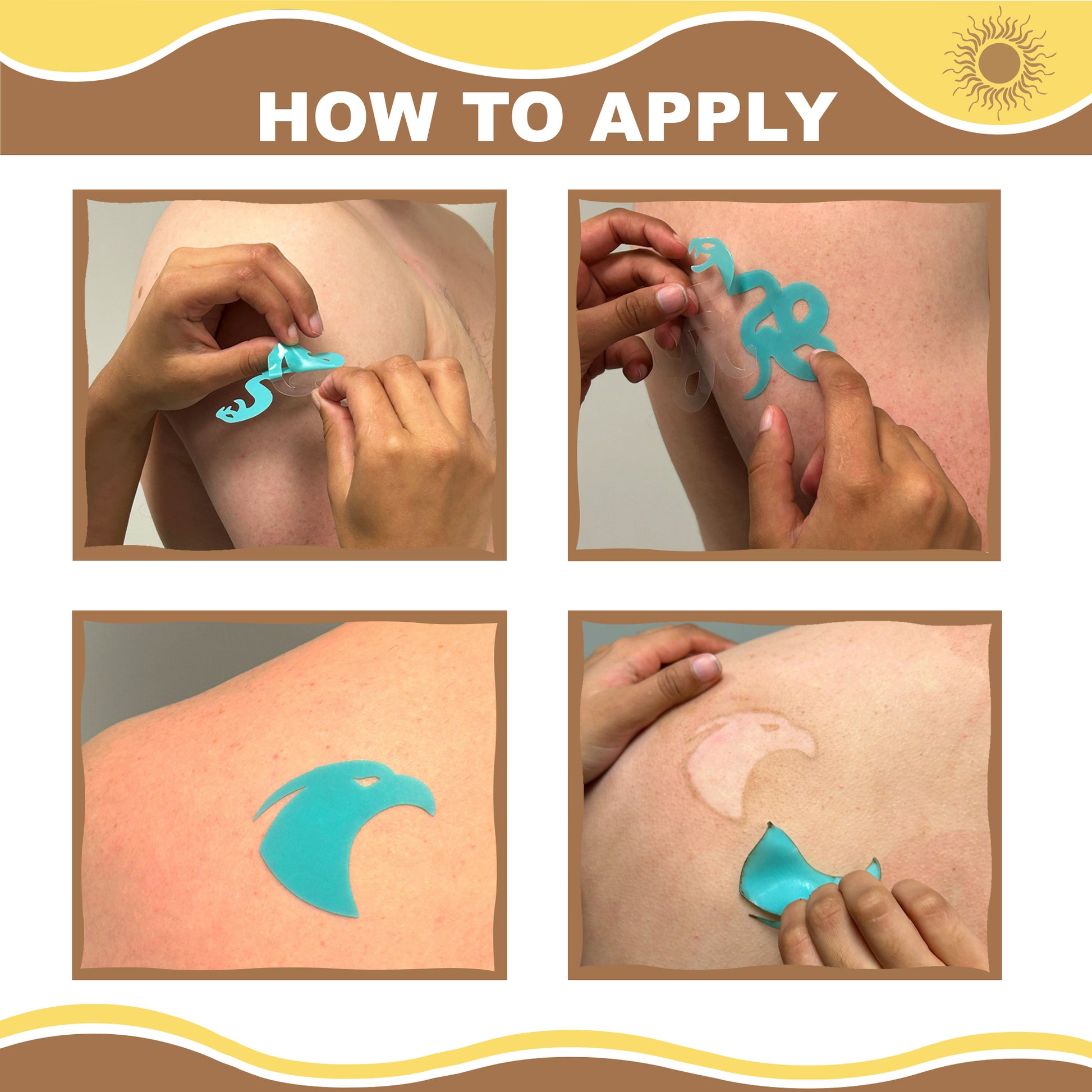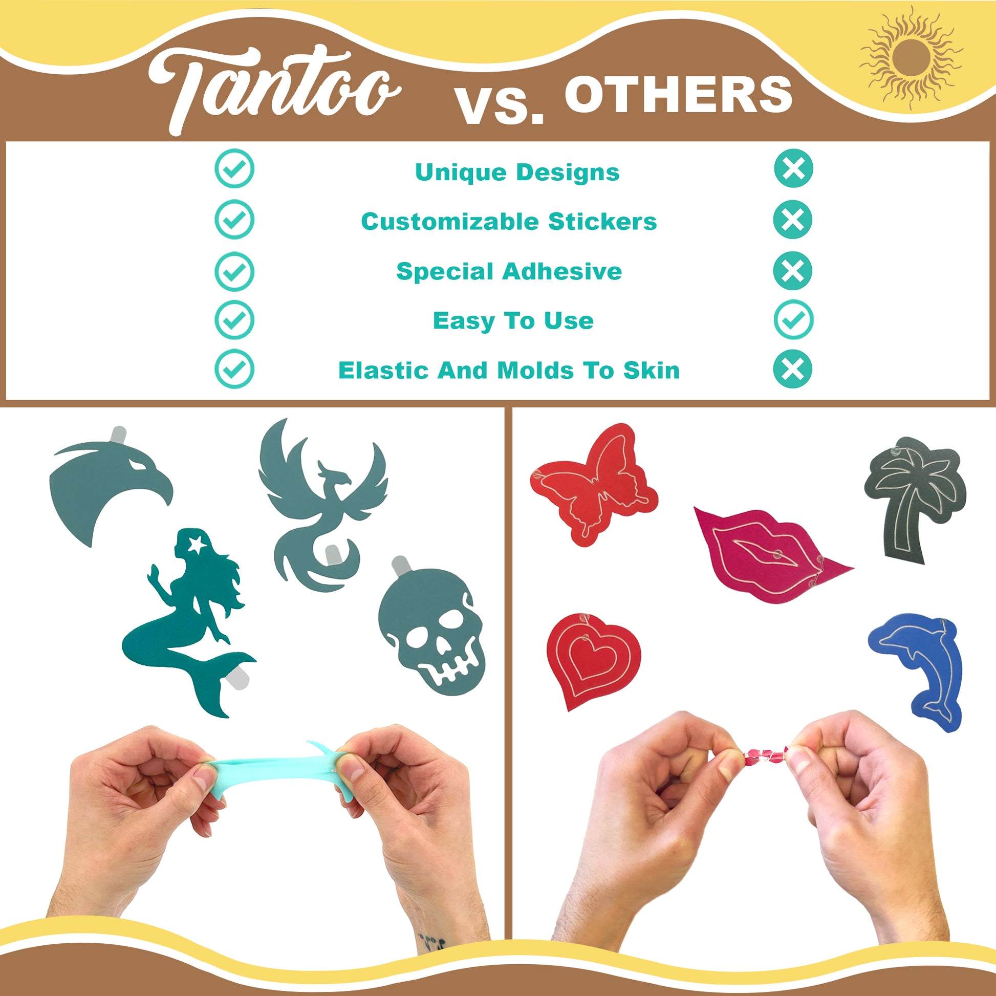 • 19 unique tanning sticker designs