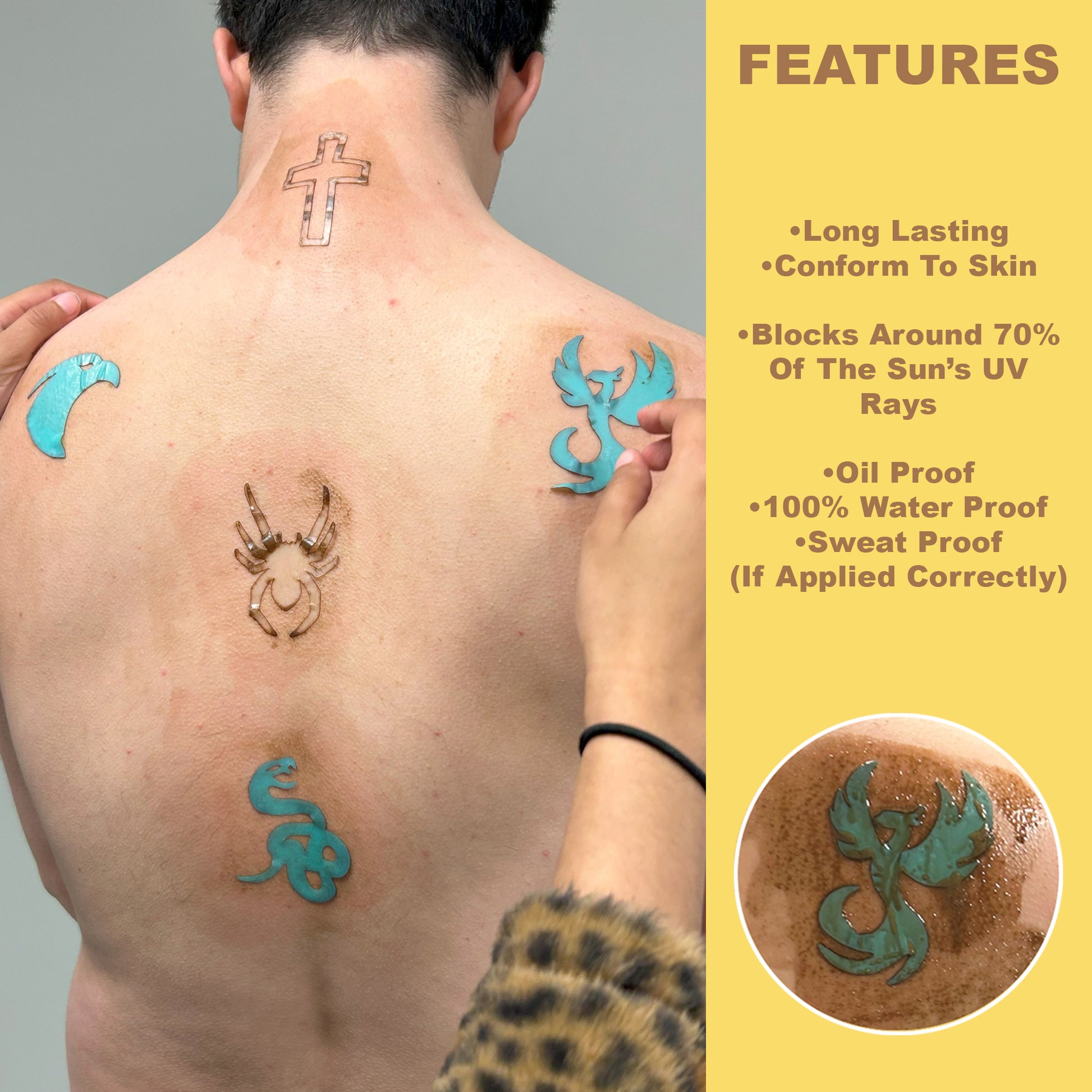 • Skin safe, waterproof, sweat proof & oil resistant