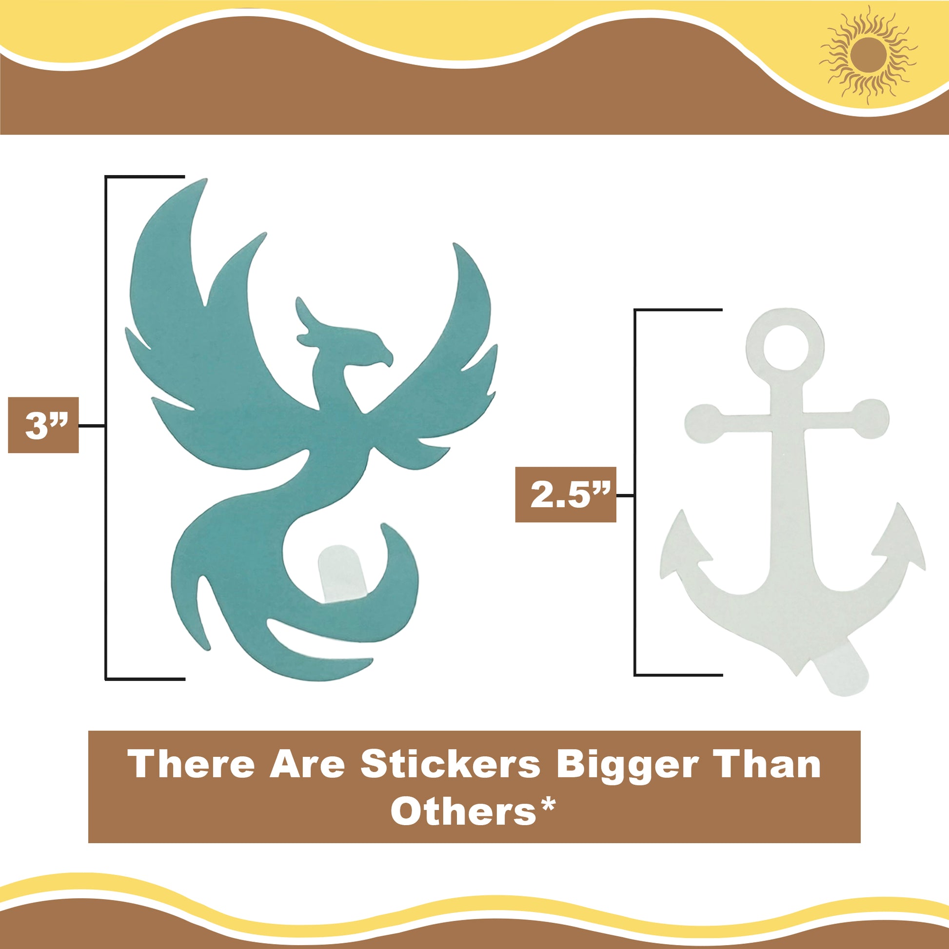 Made from skin safe, waterproof, and sweat proof material, every sticker in this set is built to last through all your sunlit adventures.